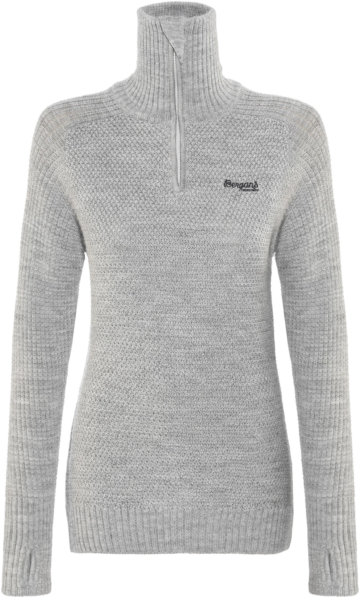 Dikke trui van zachte, comfortabele merinowol met extra hoge kraag en zachte kinbescherming. Kan solo gedragen worden of als verwarmende tussenlaag onder de hardshell jacket.