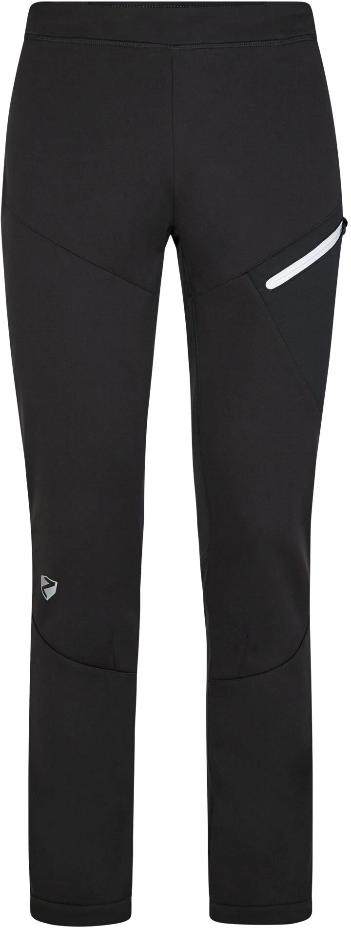 The functional ZIENER ladies’ softshell/hybrid trousers NABELLE LADY are perfect for cross-country skiing. The intelligent mix of materials is certainly impressive, featuring windproof softshell material on the front (ZIENER WINDSHIELD) and an elasticated, robust rear in stretch material, offering maximum freedom of movement and wearing comfort. The trousers are PFC-free thanks to their environmentally friendly waterproofing. The zips at the ends of the legs ensure the bottoms close perfectly over shoes. The comfortable waistband is adjusted with a drawstring. The hybrid trousers are equipped with a zippered pocket on the thigh. The trousers also come with reflective design elements.